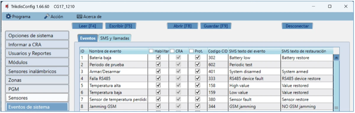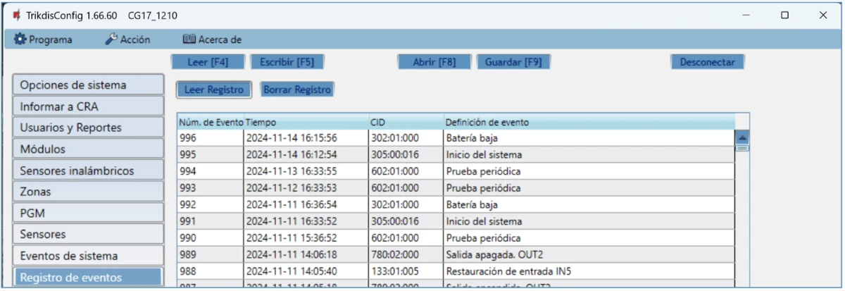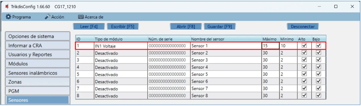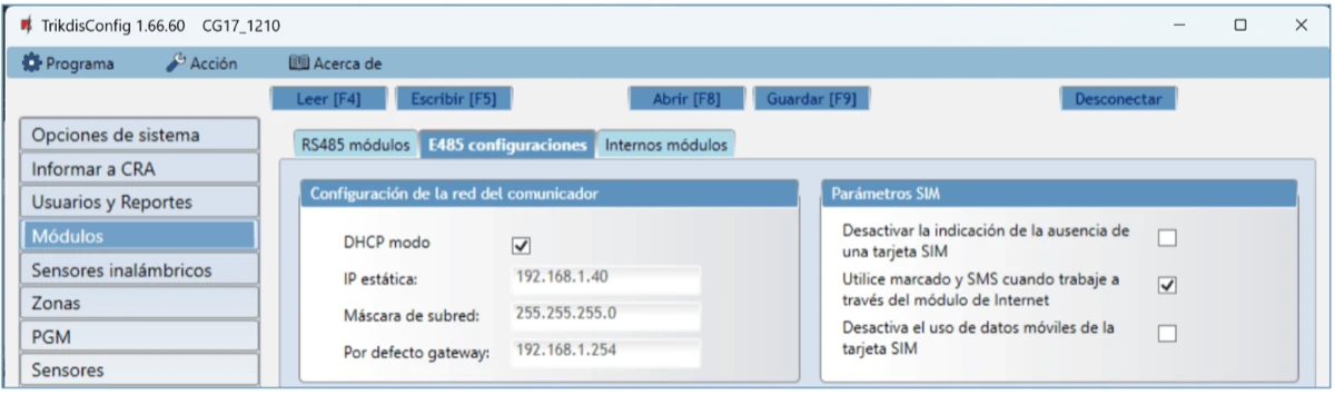 Realice los cambios deseados en la configuración del CG17 y haga clic en Escribir [F5]. Si desea desconectarse del CG17, haga clic en “Desconectar” y salga del programa TrikdisConfig.