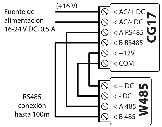 | Número máximo de dispositivos conectados al bus de datos RS485 | 8 |