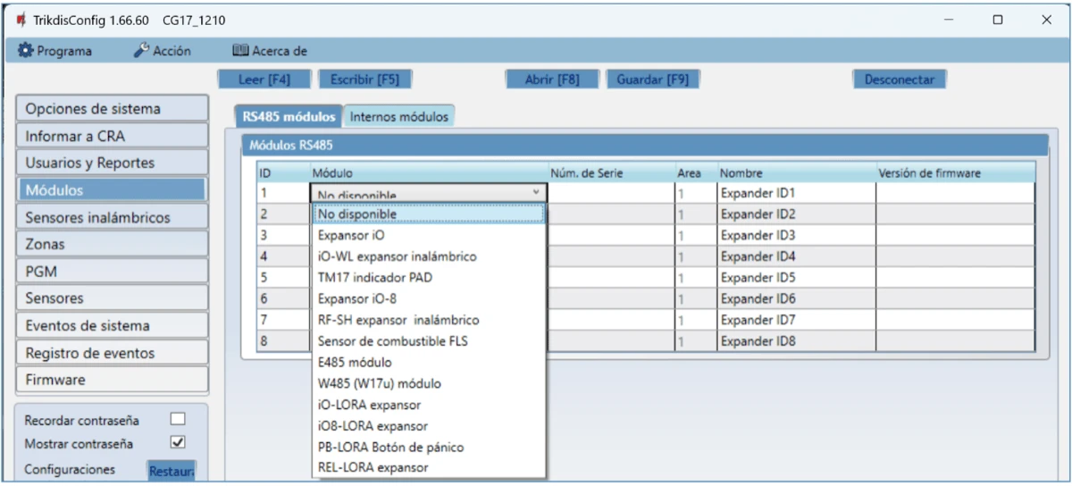 | Módulos soportados | iO-8 – módulo expansor; / iO – módulo expansor; / iO-MOD – iO-WL – Transmisor-receptor de ondas de radio; / iO-WL – módulo expansor inalámbrico; / RF-SH – receptor de ondas de radio para sensores inalámbricos; / E485 – módulo para conectarse a la red Ethernet; / W485 – módulo para conectarse a la red WiFi; / TM17 – lector iButton; / CZ-Dallas – lector iButton; / FLS - sensor de nivel de combustible Strela RS485; / iO-LORA - módulo expansor; / iO8-LORA - módulo expansor; / PB-LORA – botón de pánico; / REL-LORA – módulo expansor . |