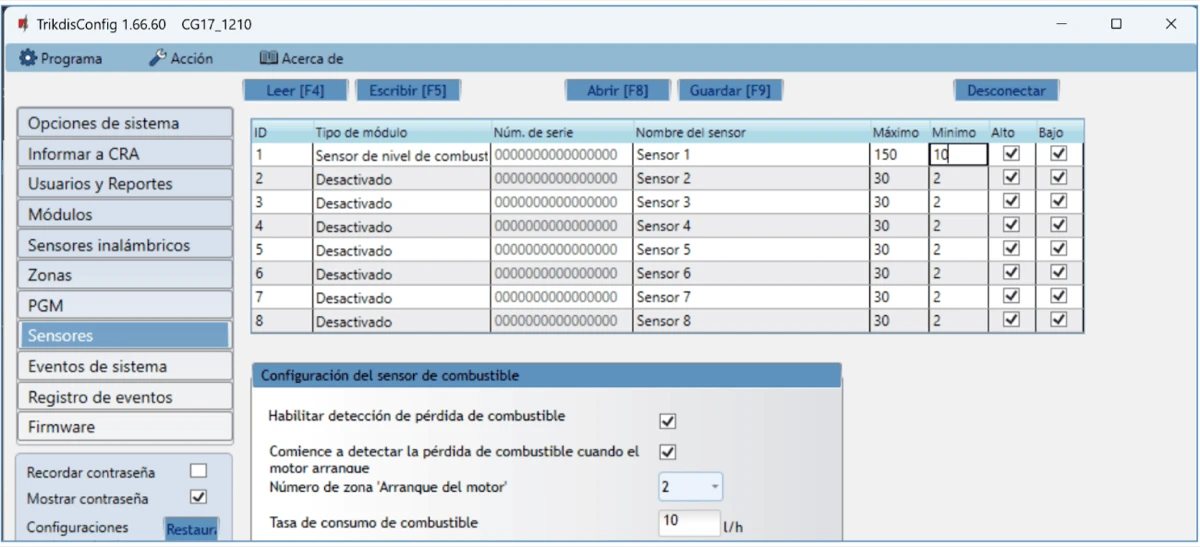 | Número máximo de llaves de contacto (iButton) | 12 |