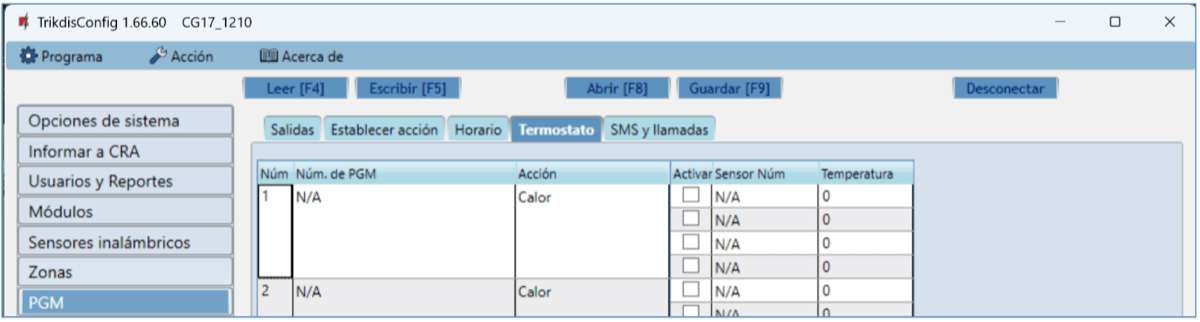 - Pestaña de “Salidas PGM”. En esta ventana, puede controlar las “Salidas PGM” que están configuradas en “Control remoto”.