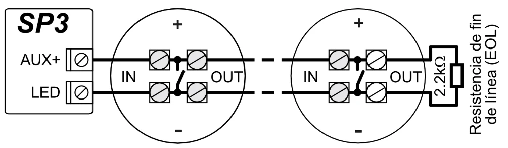 El panel de control „FLEXi“ SP3 puede reemplazar un panel anterior sin tener que cambiar los valores nominales de las resistencias de los circuitos EOL.