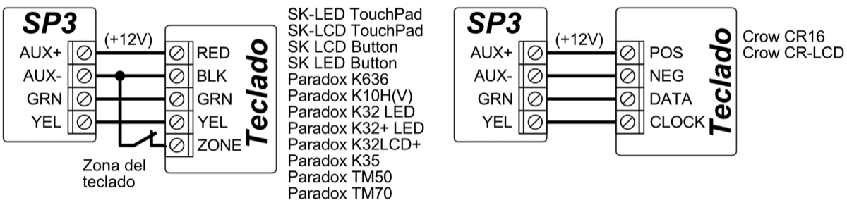 | Teclados compatibles | SK-LED TouchPad (Protegus SK232 LED W) / SK-LCD TouchPad (FLEXi SK232 LCD) / SK LCD Button / SK LED Button / Paradox K636 / Paradox K10H(V) / Paradox K32 LED / Paradox K32+ LED / Paradox K32LCD+ / Paradox K35 / Paradox TM50 / Paradox TM70 / Crow CR16 / Crow CR-LCD |