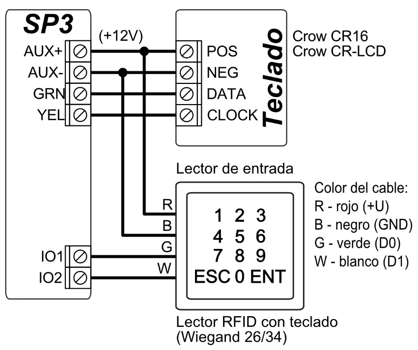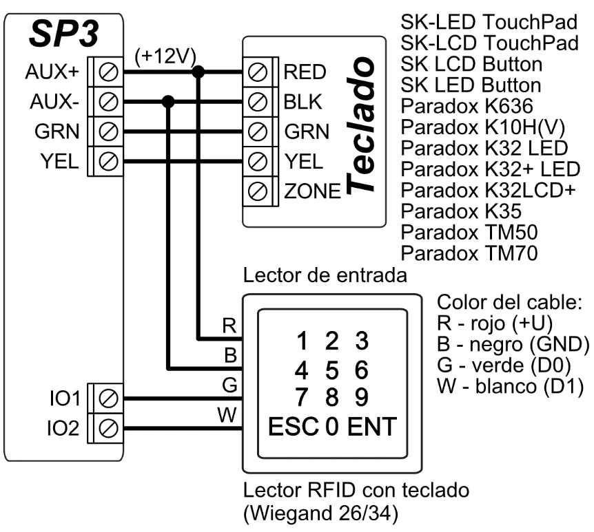 Control con teclados: SK-LED TouchPad (Protegus SK232LED W), SK-LCD TouchPad (FLEXi SK232LCD), SK LCD Button, SK LED Button; Paradox K636, K10H (V) K32 + LED, K32LED, K32LCD+, K35, TM50, TM70; Teclado Crow CR16, CR-LCD; Lector electrónico de claves CZ-Dallas (iButton); lector de llave electrónica TM17; Lector RFID (Wiegand 26/34).
