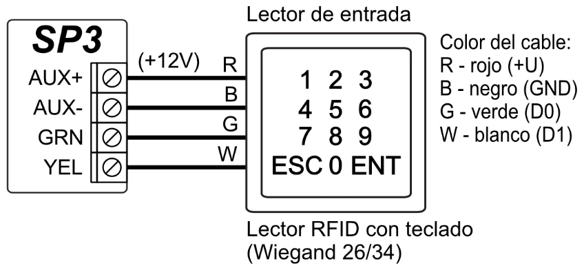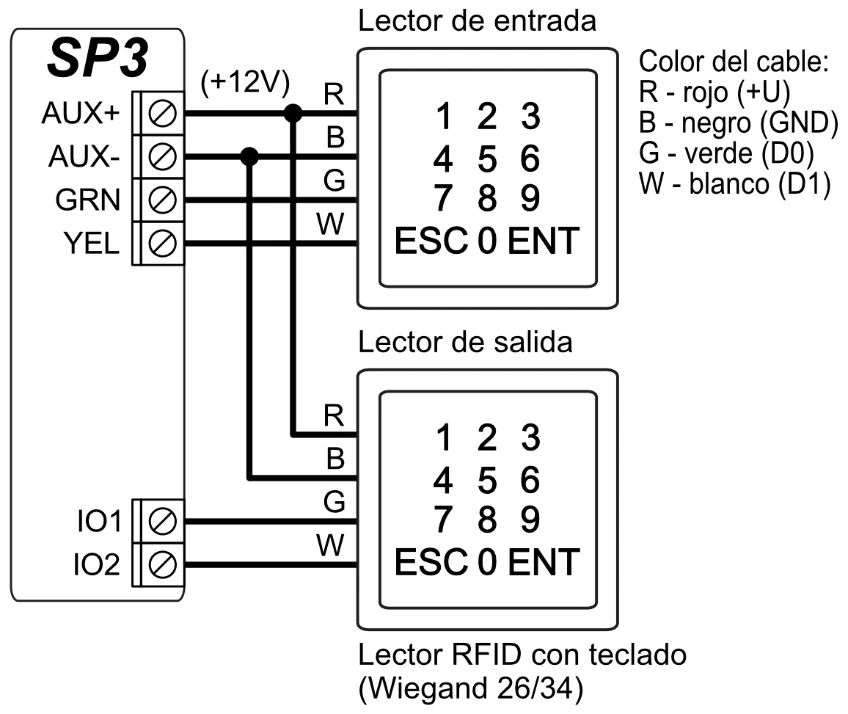 | Máximo de lectores RFID (Wiegand 26/34) | 2 |