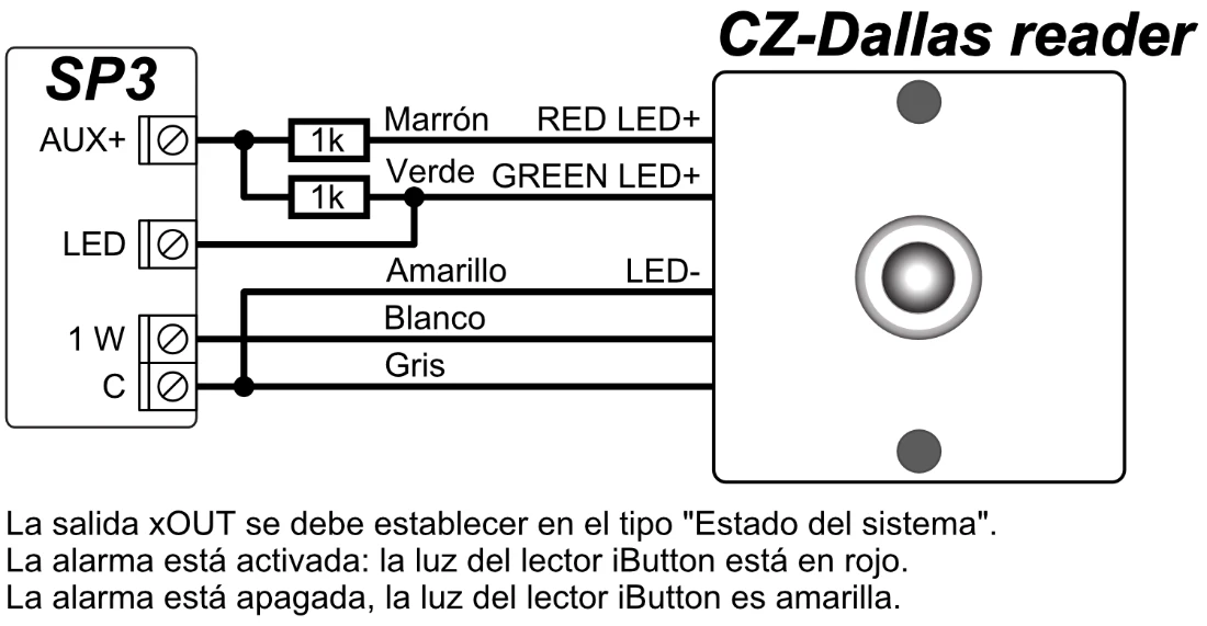 El bus de datos de un cable (1-Wire) es para conectar sensores de temperatura (hasta 8) o un sensor de temperatura y humedad (1) y un lector de mando a distancia (iButton).
