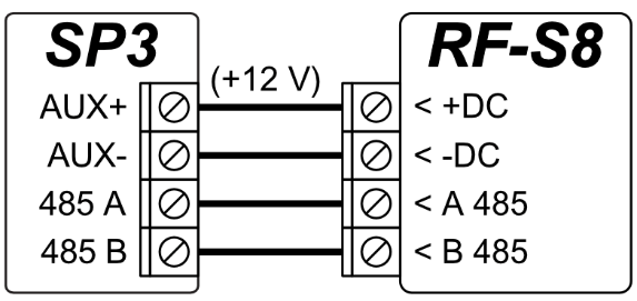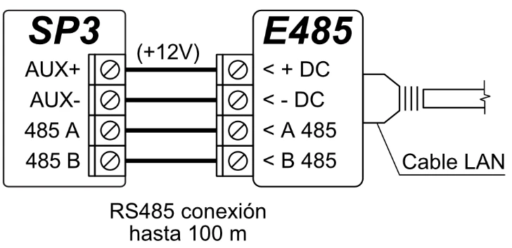 El bus de datos RS485 es para conectar: módulos expansores de la serie iO; Transmisor-receptor inalámbrico de sensor de onda de radio RF-SH, RF-LORA, RF-S8, RF-HW; Módulo Ethernet E485; Transmisor de ondas de radio T16 VHF o UHF; módulo SF485.