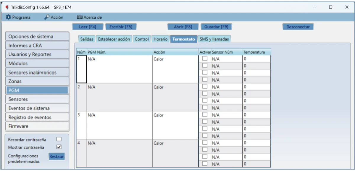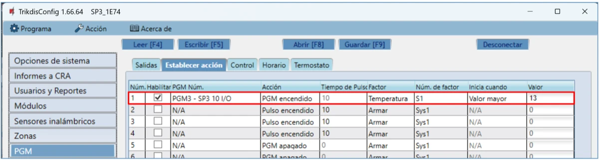 PGM Núm. – especifica el número de salida PGM que controlará el termostato.