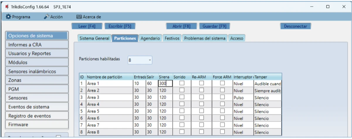 Control del sistema de alarma