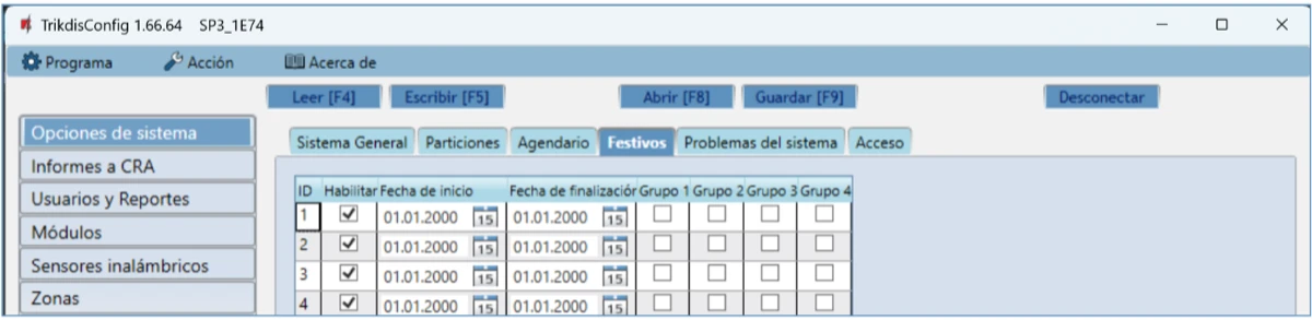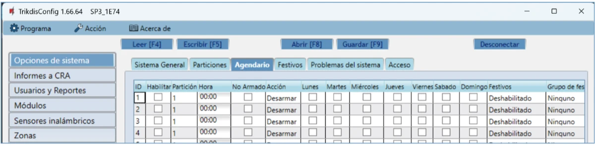 Habilitar – activa la programación.
