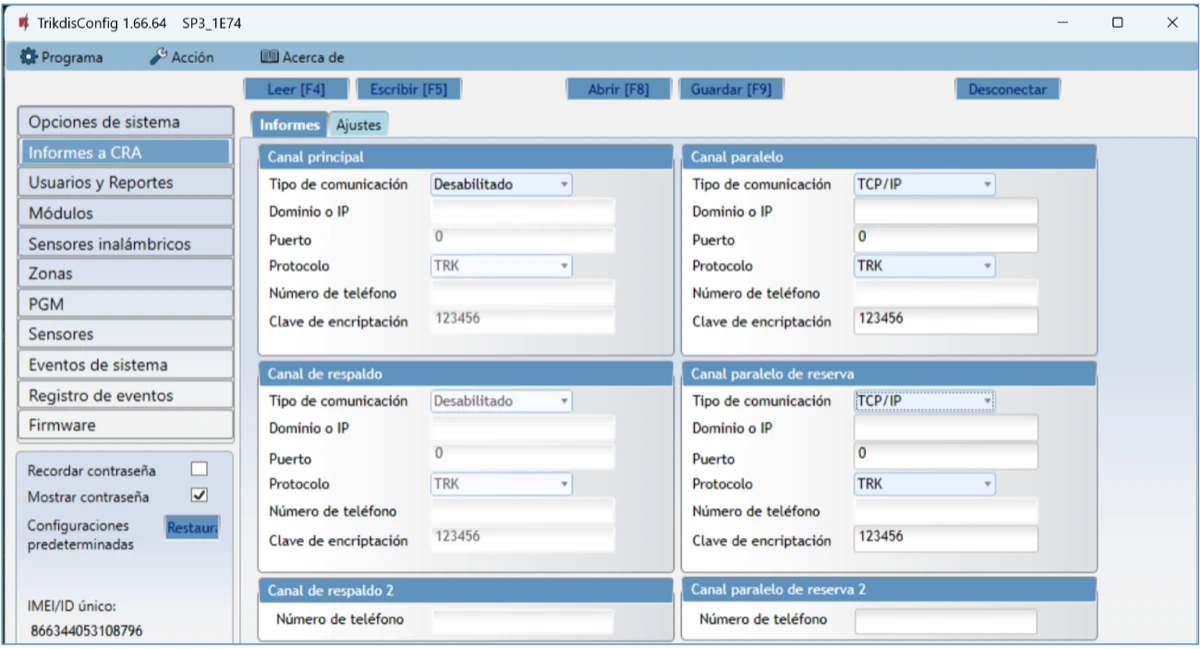 | Cifrado de Informe | TRK AES 128, SIA IP AES 128 |