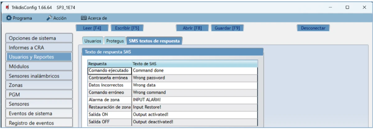 | Direcciones de transmisión de informes | A receptores principales y de respaldo de 2 compañías de seguridad diferentes; Al servidor en la nube de Protegus, a aplicación móvil Protegus2 en iOS/Android; A 8 teléfonos móviles a través de mensajes SMS. Llama a 8 teléfonos móviles. Si un usuario responde la llamada, se anuncia el evento mediante voz (Para panel de seguridad SP3_12xx con versión de firmware hasta 1.13 inclusivo). |
