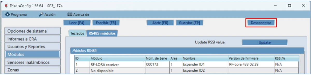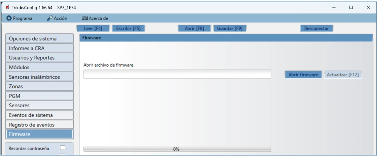 Abre la ventana Firmware de TrikdisConfig.