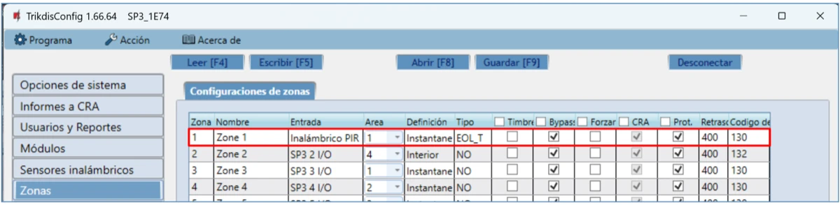 | Número de zonas | 10 (20 zonas si se usa ATZ), (se puede ampliar a 32 zonas con expansores) |