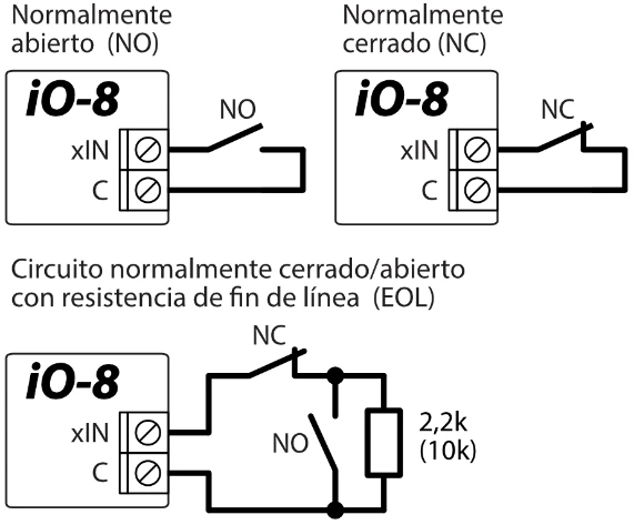 iO-8 tiene 8 contactos, que se pueden configurar en modo de entrada o salida.