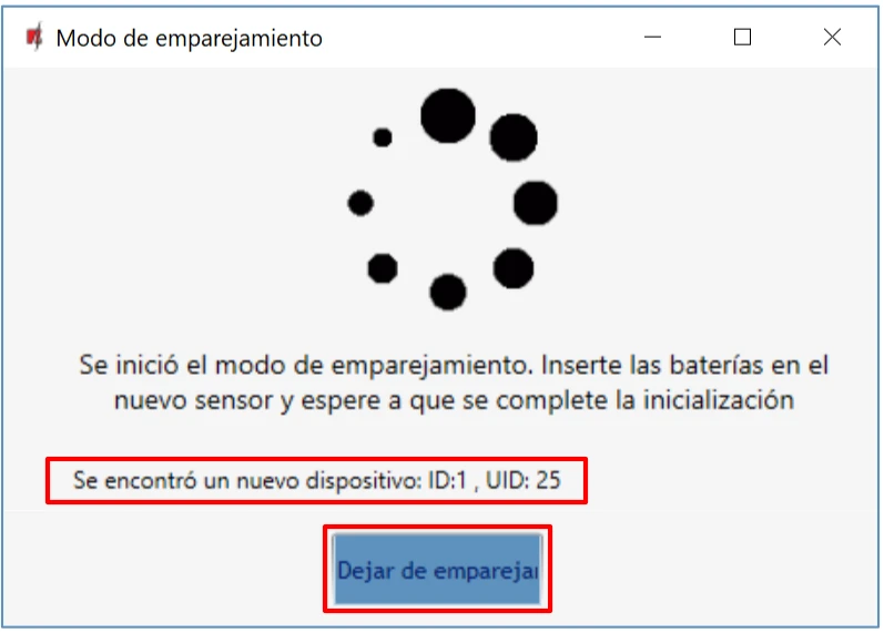 Si la carga de los sensores ha terminado, presione " Dejar de emparejamiento".
