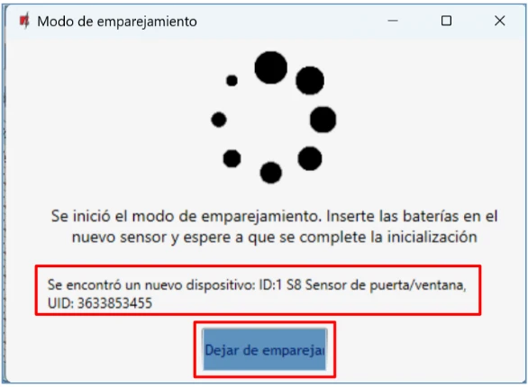 Haga clic en „Dejar de emparejamiento” para completar el registro de sensores inalámbricos.