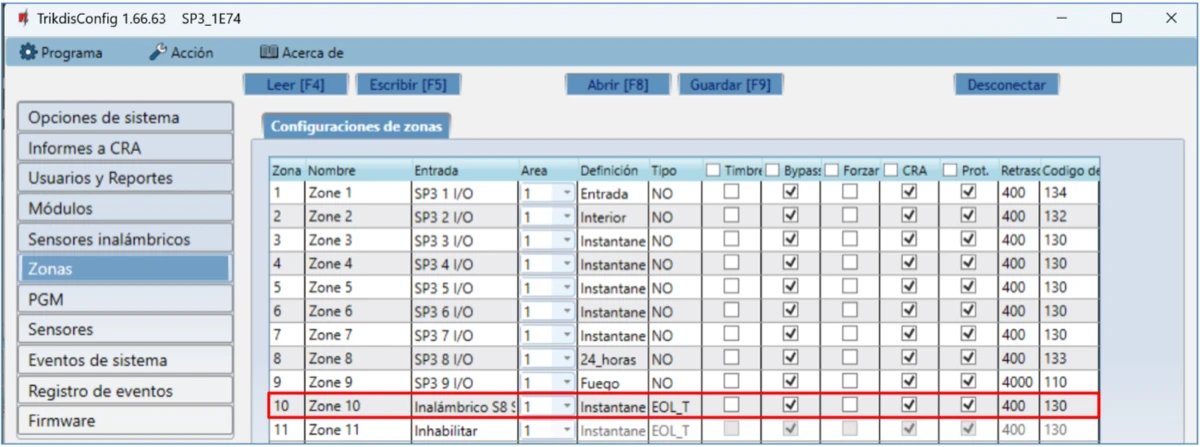 Se abrirá una nueva ventana en TrikdisConfig. El sensor debe tener asignado un „Número de zona” y una „Definición de zona”.