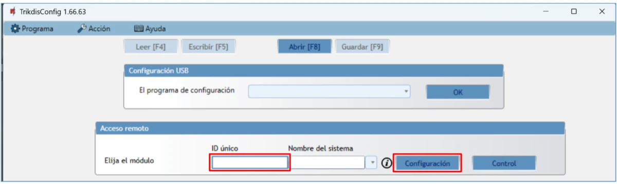Ejecute TrikdisConfig. Presione el botón Leer [F4].