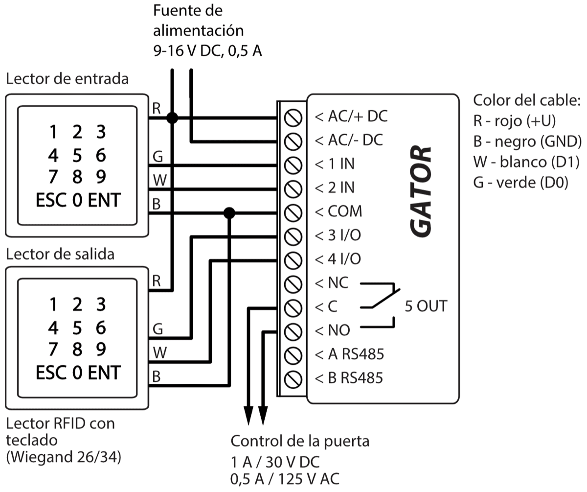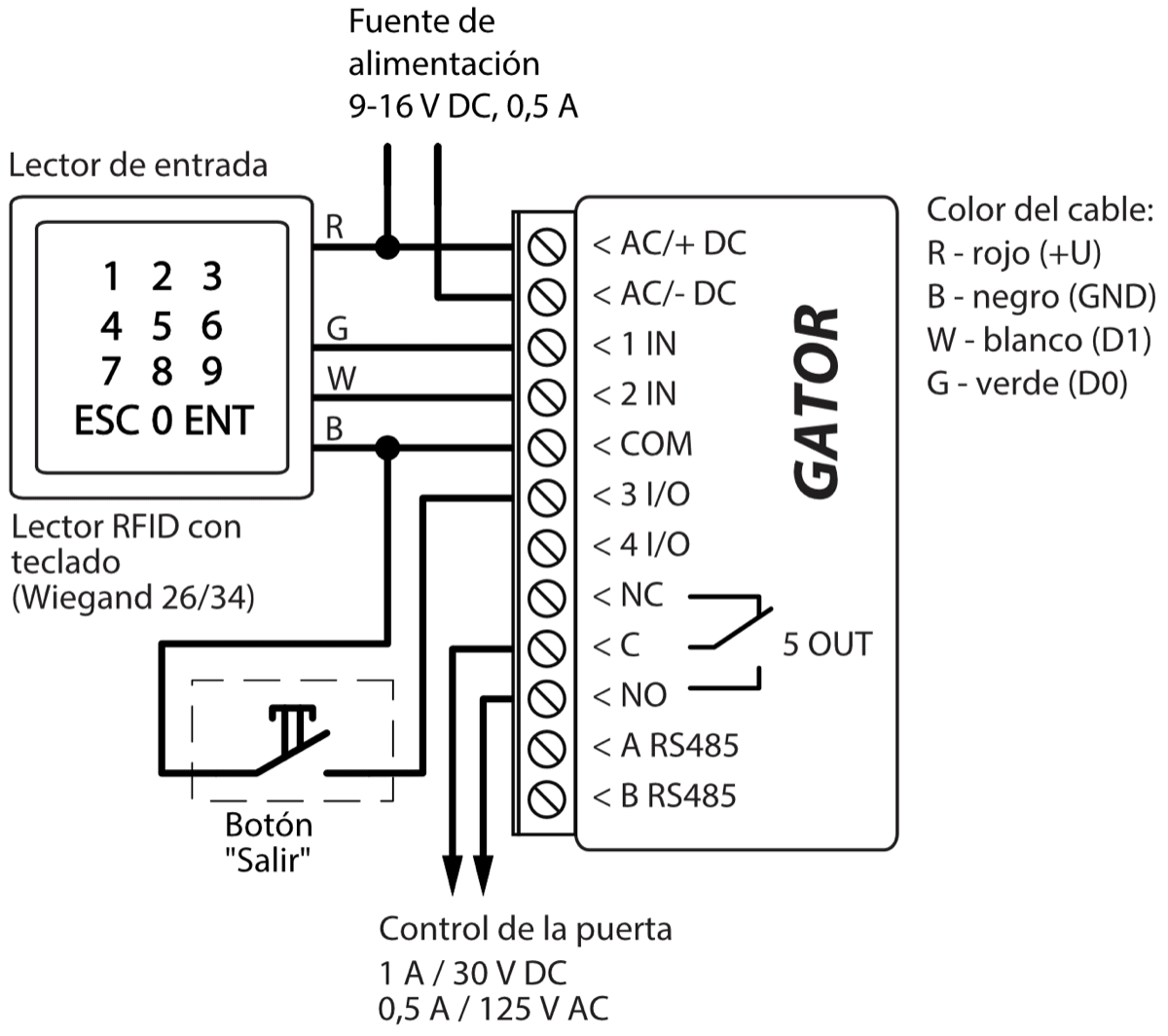 Código - si un lector RFID con un teclado Wiegand 26/34 está conectado al controlador, entonces el usuario puede ingresar el código de control.