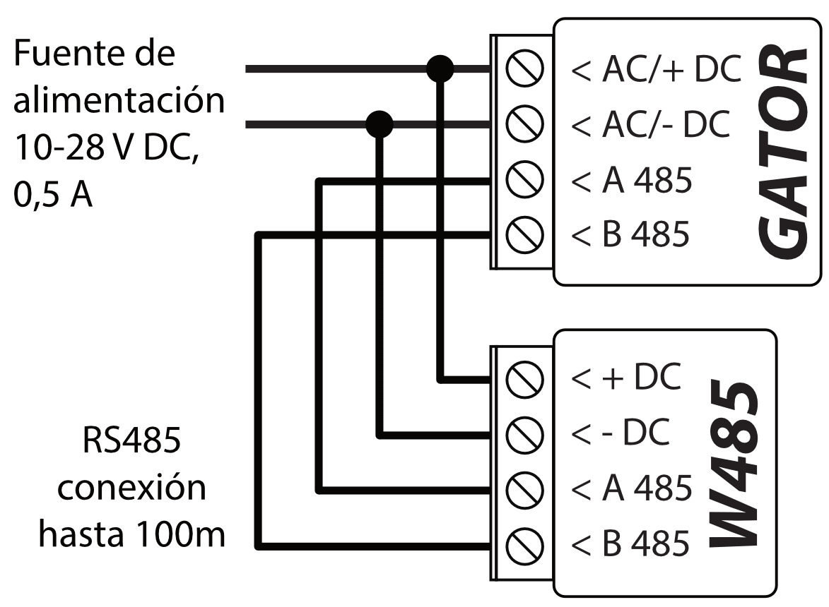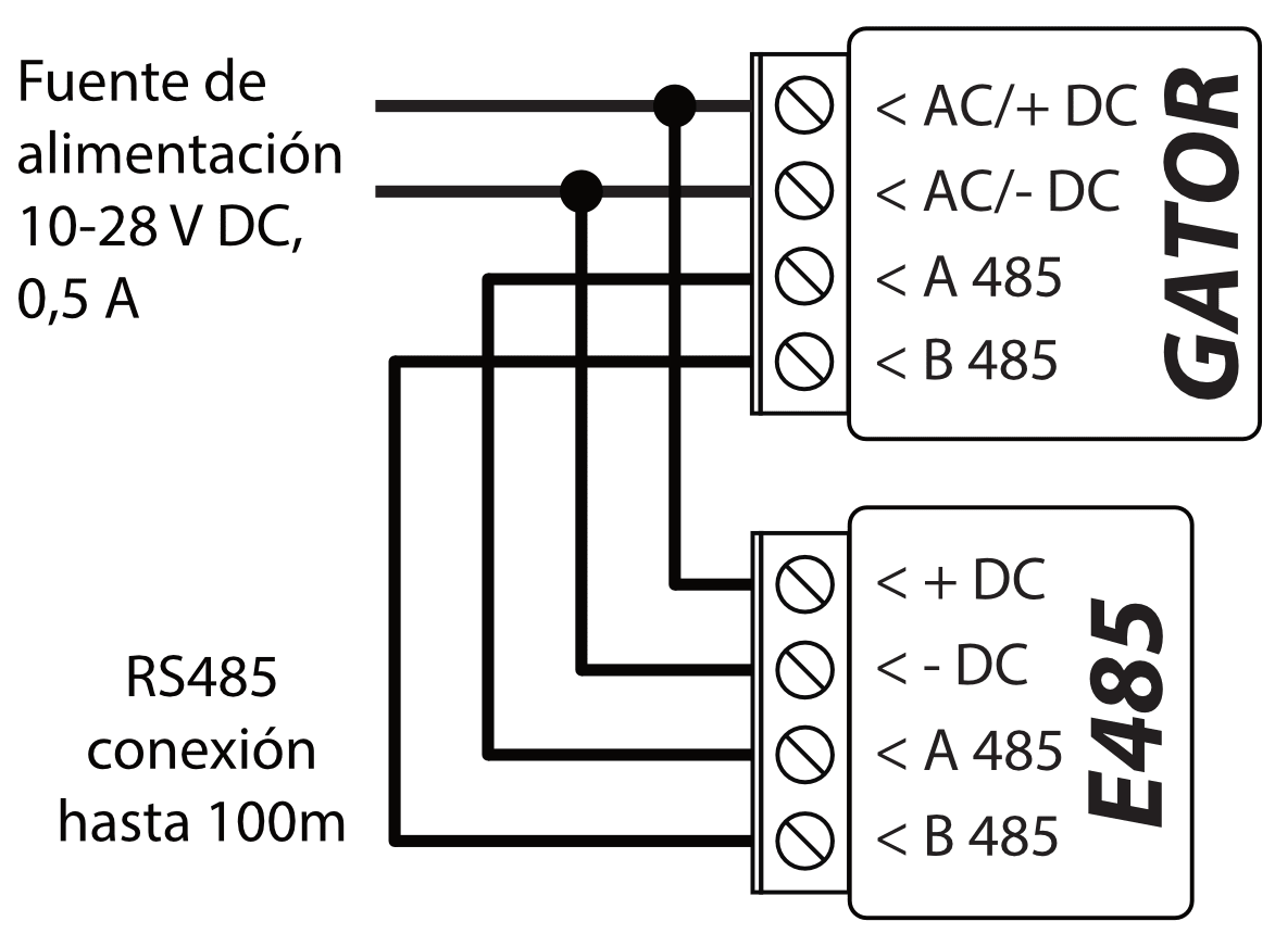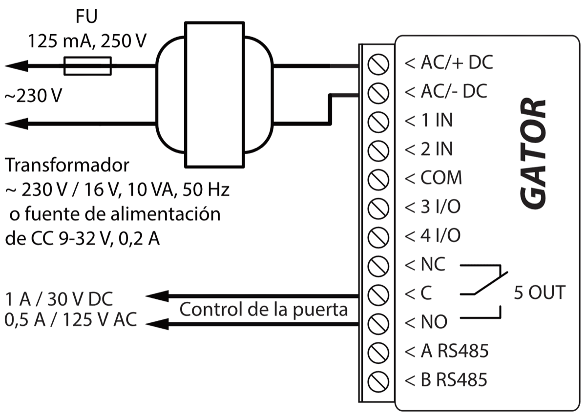 | AC/+DC | Terminal de poder (9-32 V DC positive; 12-24 V AC) |