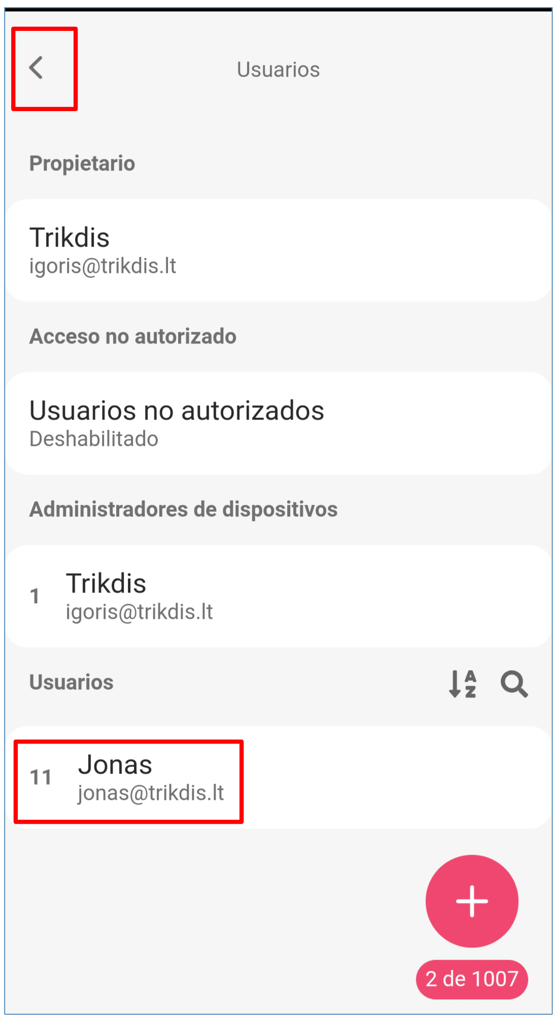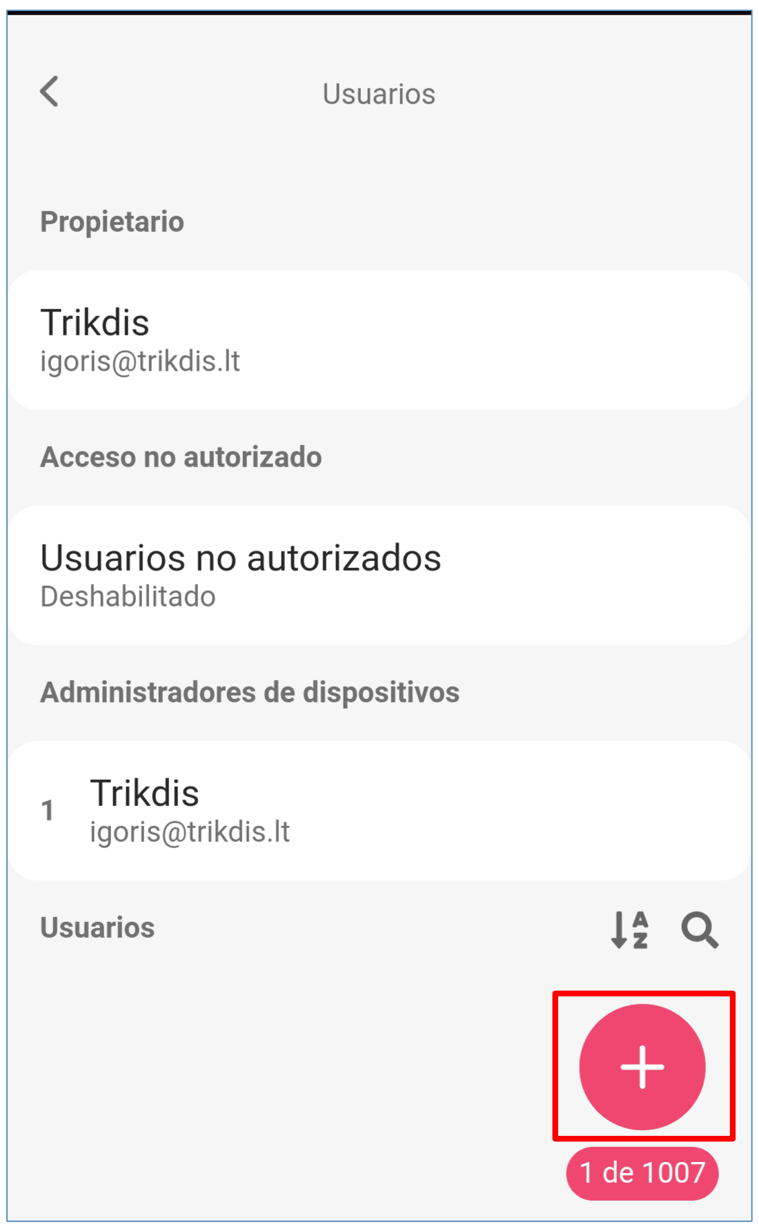 La adición de nuevos usuarios y la supresión de los usuarios existentes se puede hacer con la aplicación Protegus2 (cuando inicie sesión con derechos de administrador), mensaje SMS, el software TrikdisConfig.