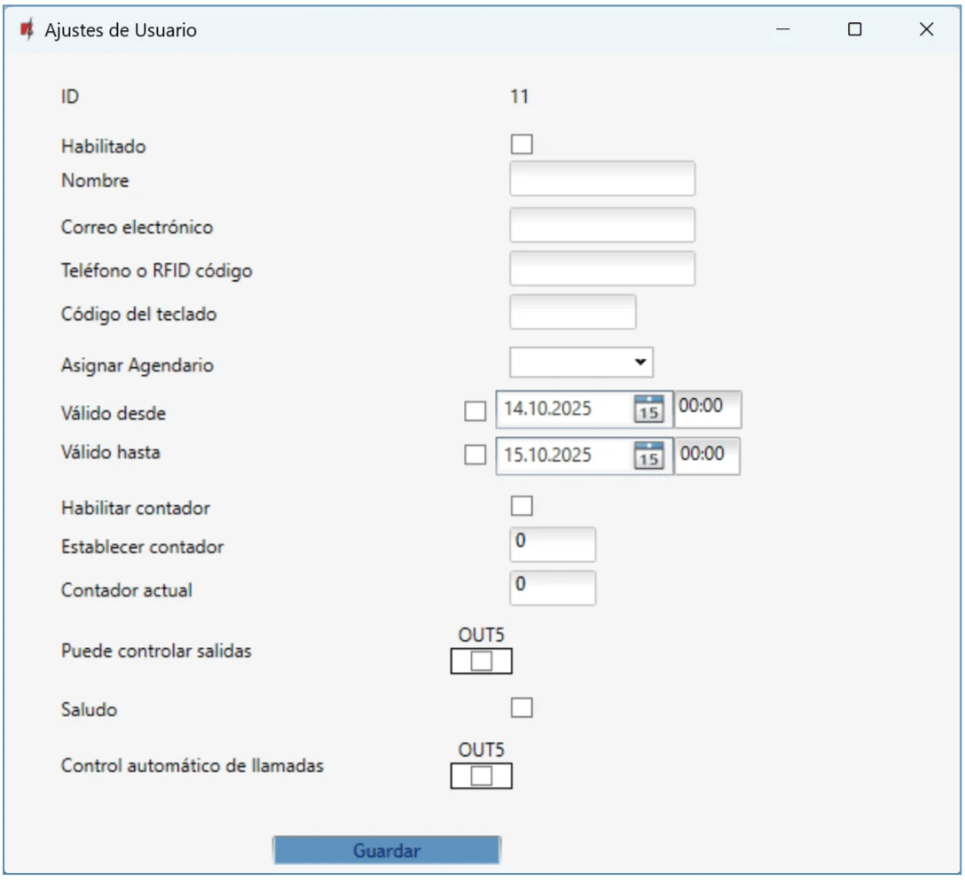 Configuración de usuario (números del 11 al 1010) - ID - número de usuario.