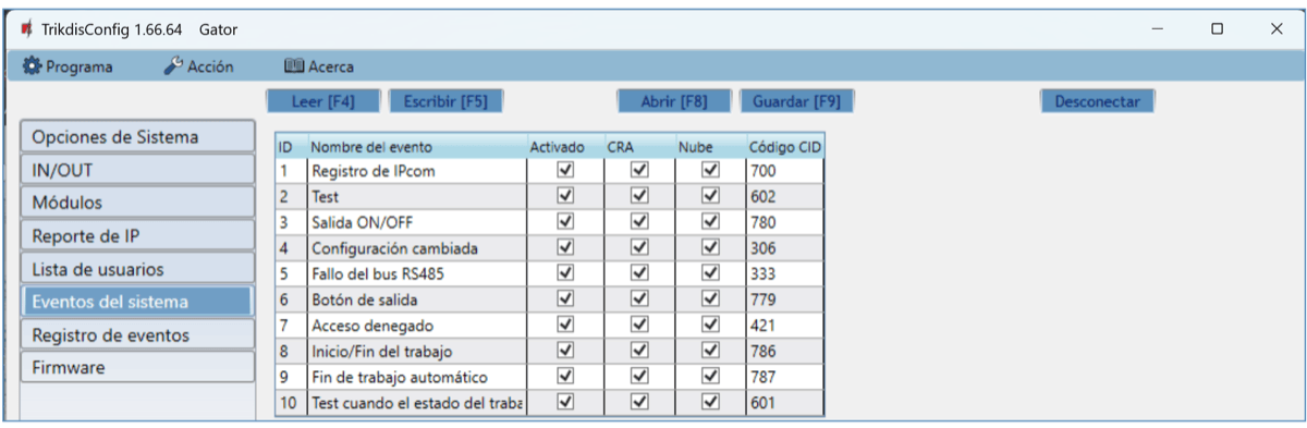 Configuración del envío de eventos del controlador a CRA y la aplicación Protegus2.
