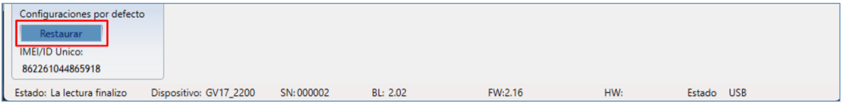 Para restaurar la configuración a fábrica del controlador se necesita hacer clic en el botón “Restaurar” en la ventana del programa TrikdisConfig.