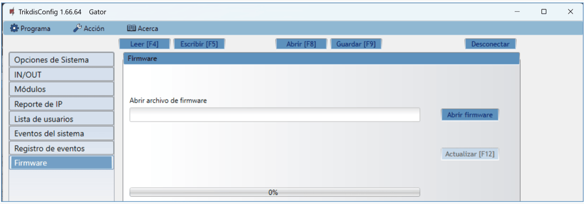 Haga clic en el botón “Abrir firmware” y seleccione el archivo de firmware requerido.