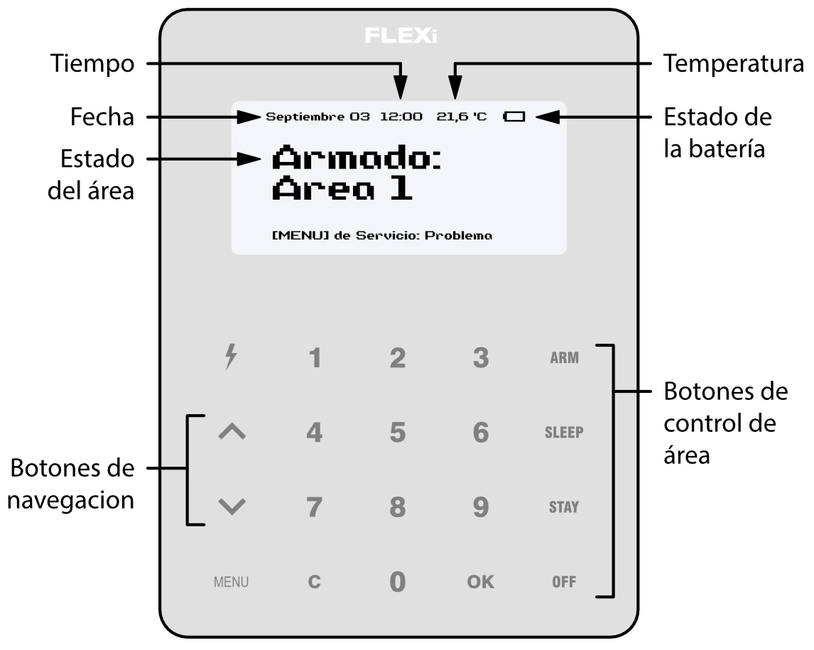 Cuando se desarma, en la pantalla aparecerá el texto Desarmado: Área.