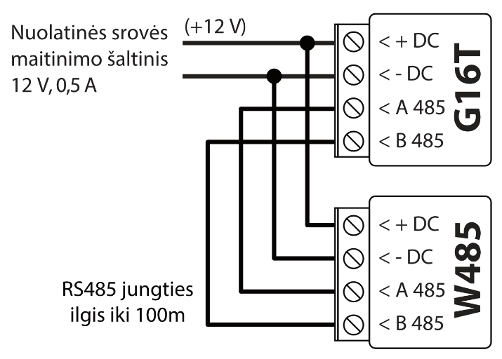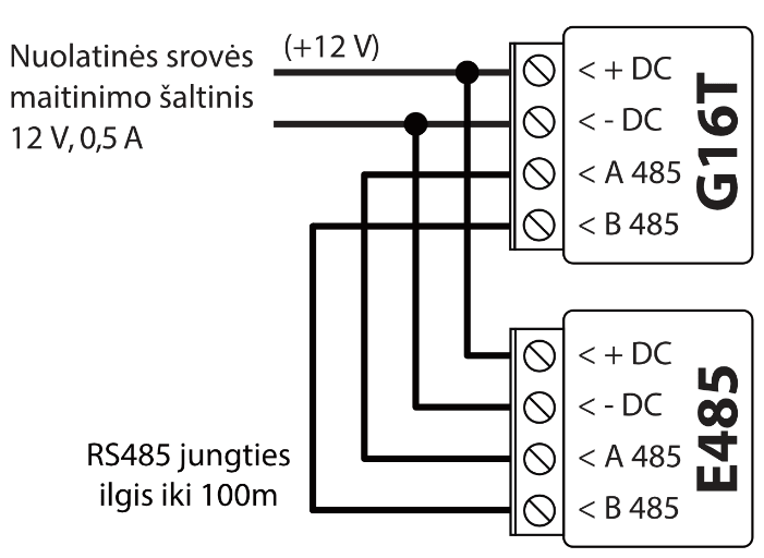 | B 485 | RS485 magistralės B kontaktas |