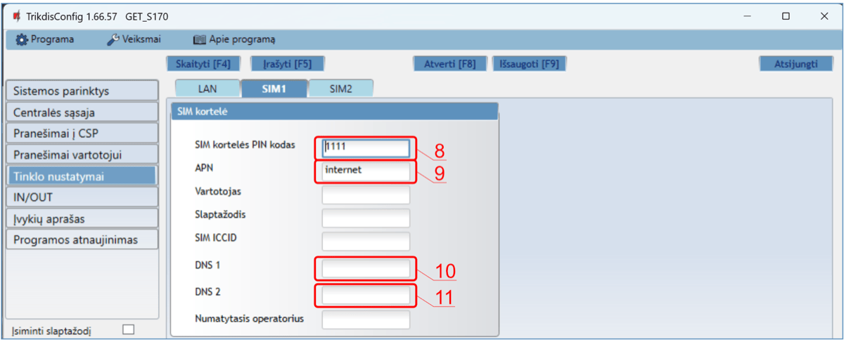 | NETWORK LTE | Nešviečia | Nėra ryšio su GSM tinklu. |