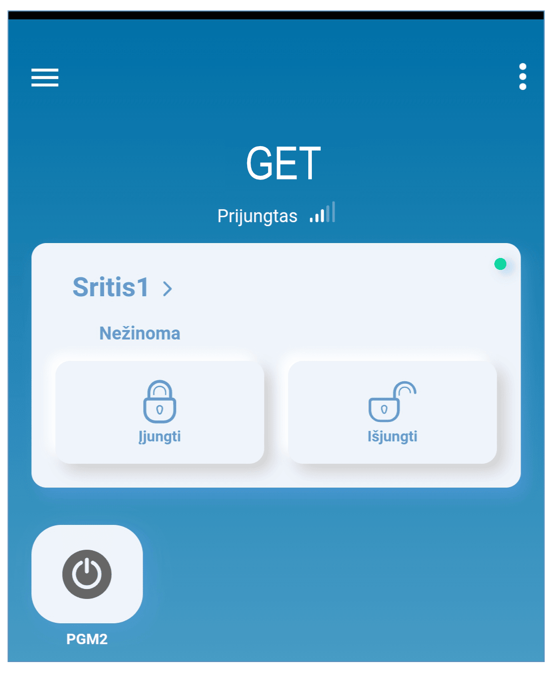 Nuotolinis prijungtų įrenginių valdymas (šviesų, vartų, kondicionieriaus, šildymo, pievutės laistymo ir kt.).