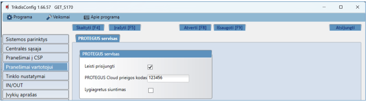 Komunikatorius GET skirtas perduoti įvykių pranešimus iš centralės į CSP ir Protegus2 programėlę.