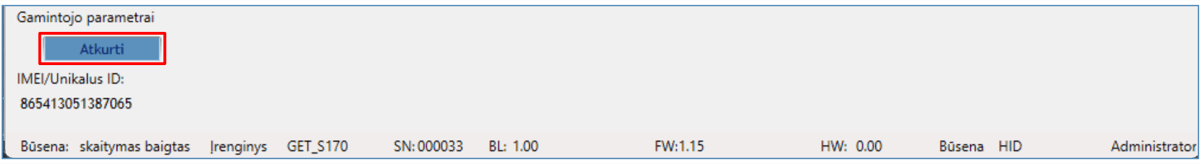 Mygtukas „RESET“.