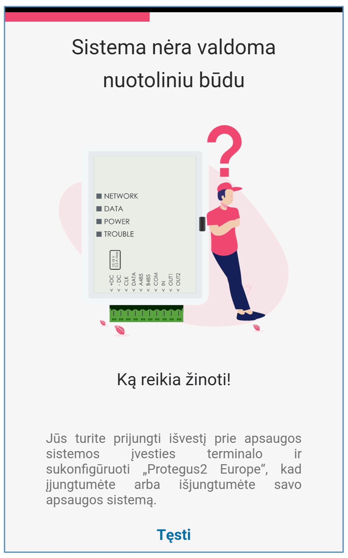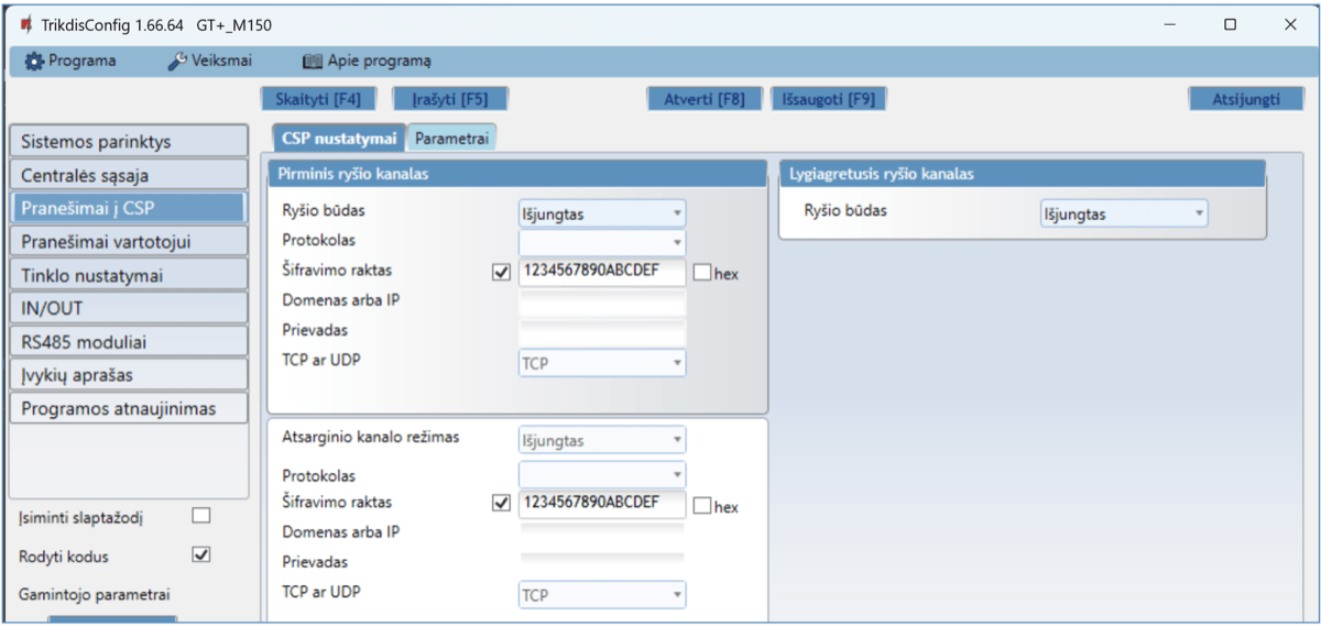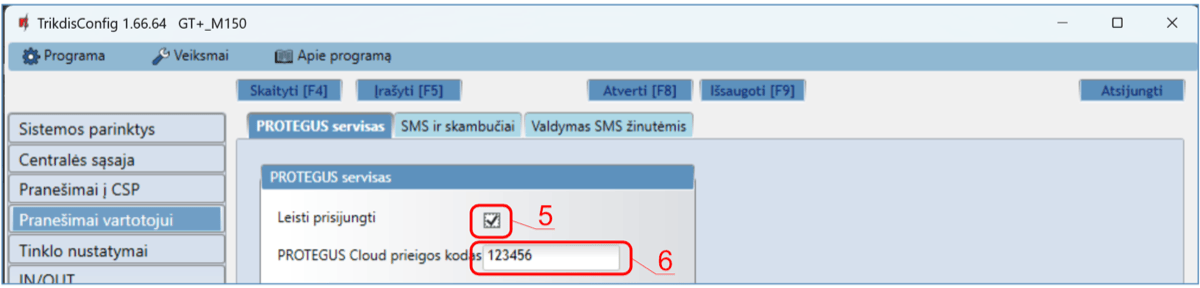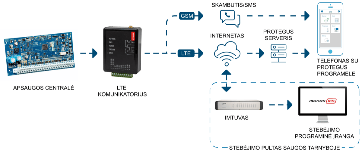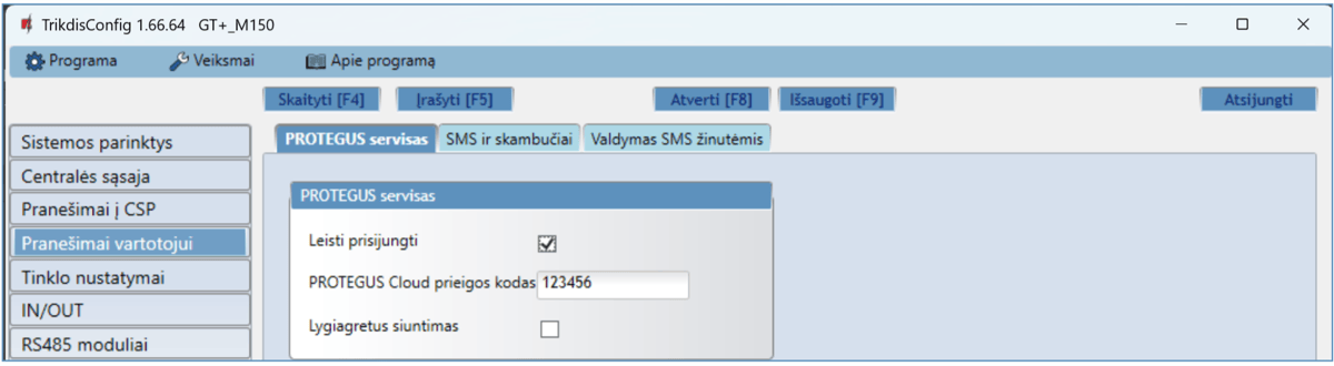 Komunikatorius GT+ skirtas perduoti įvykių pranešimus iš centralės į CSP ir Protegus2 programėlę.