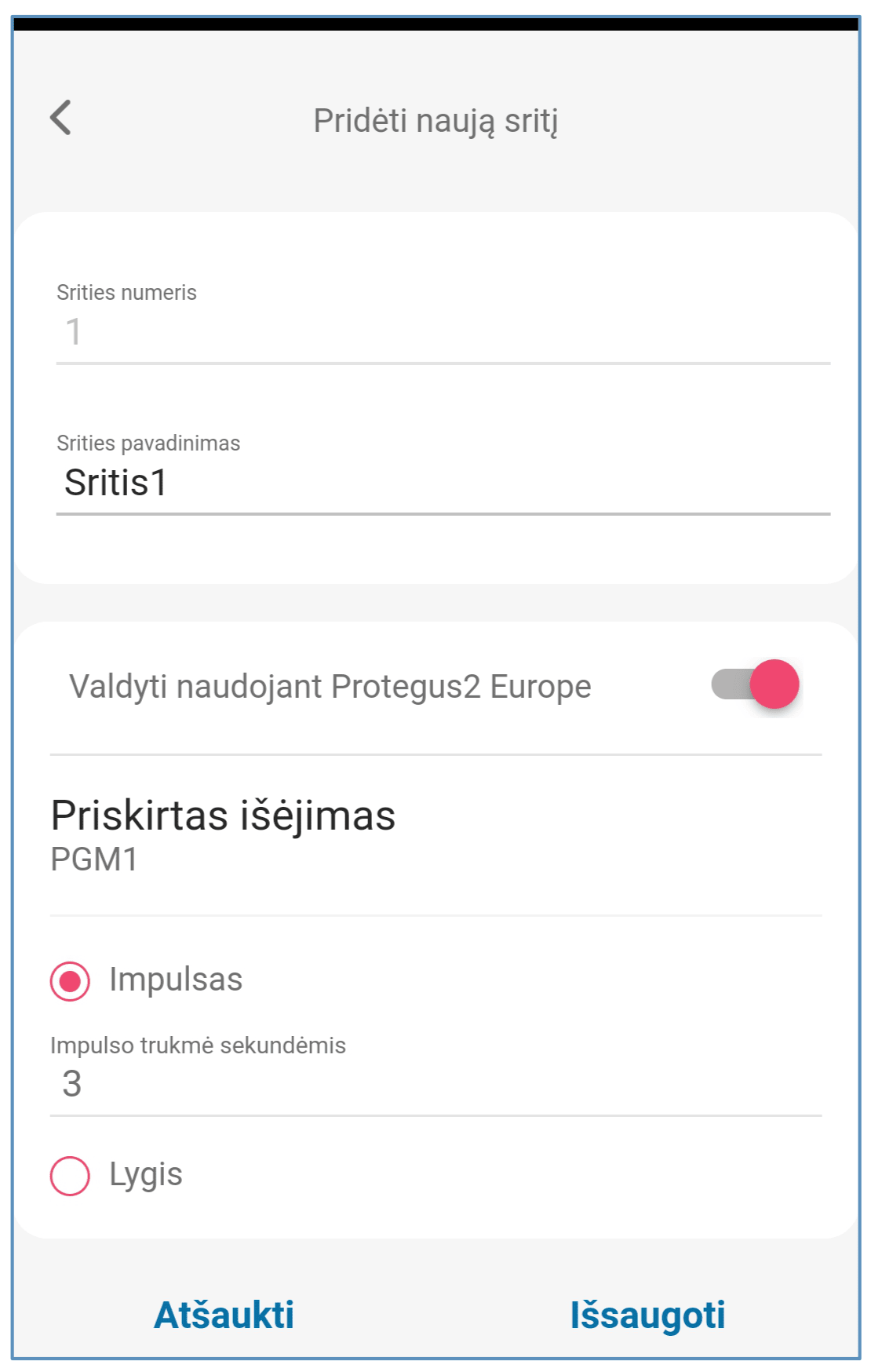 Išėjimai valdomi su Protegus2 programėle ir SMS žinutėmis.
