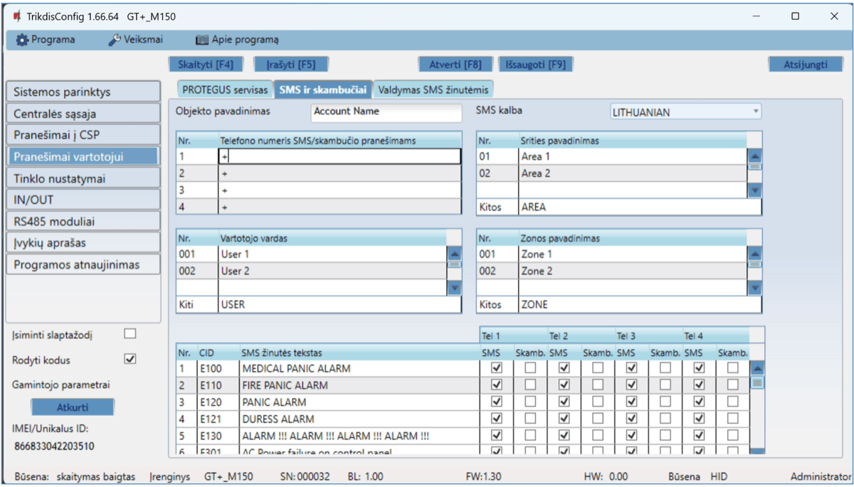 | DATA | Nešviečia | Nėra neišsiųstų įvykių pranešimų. |