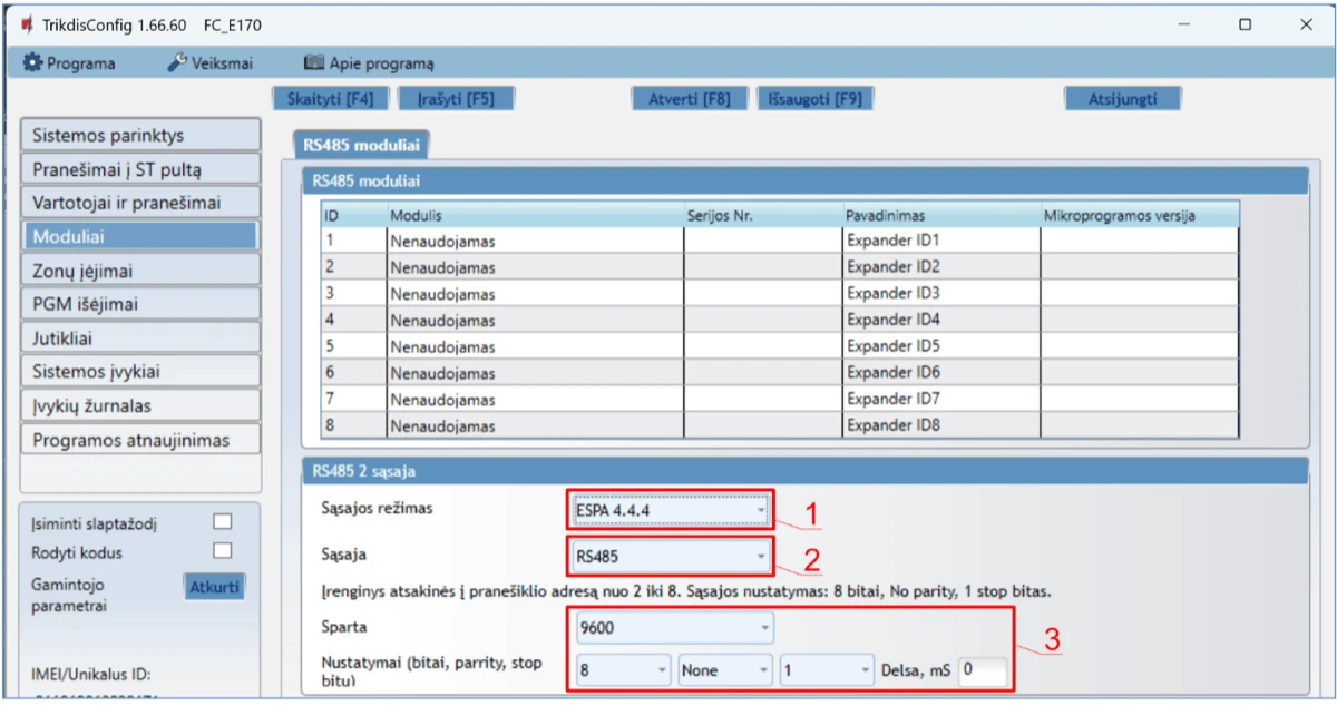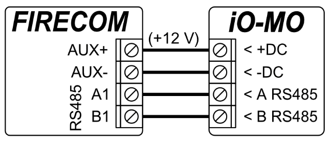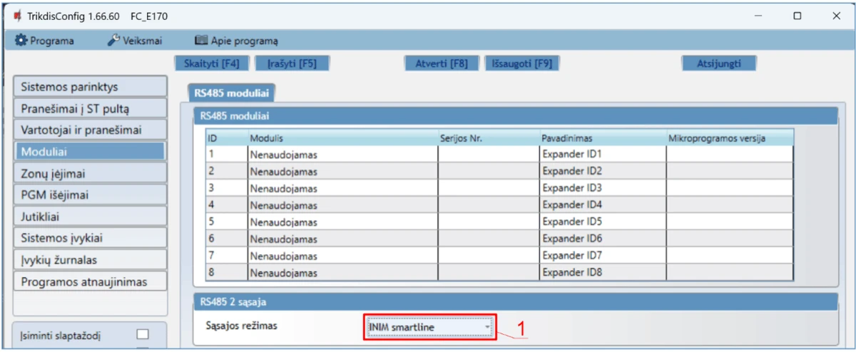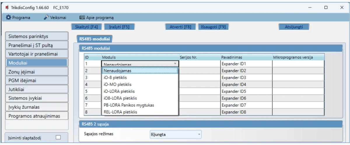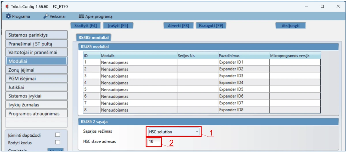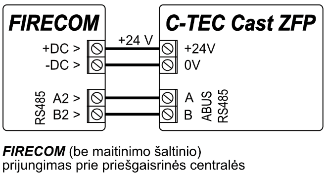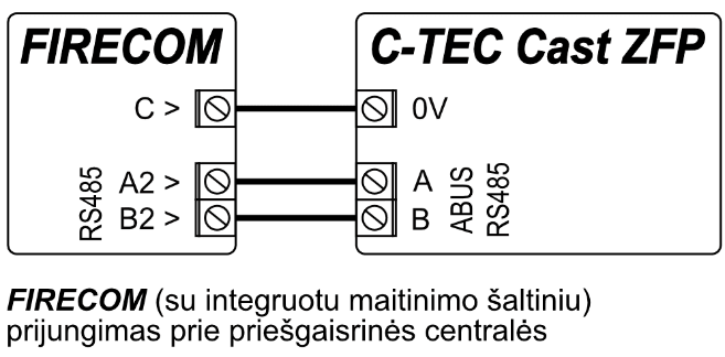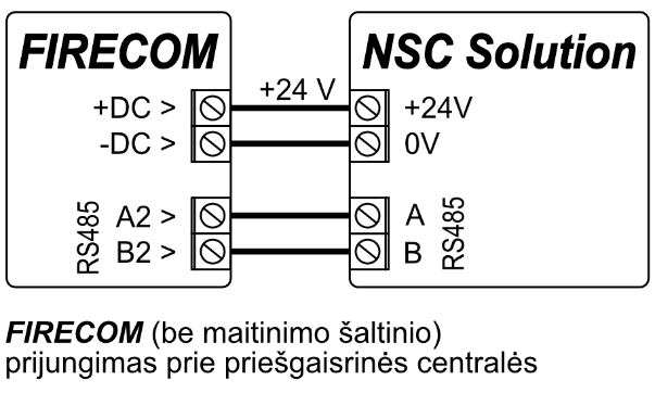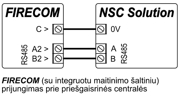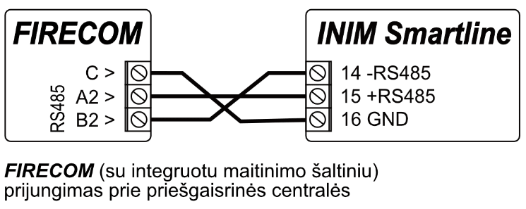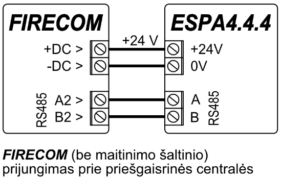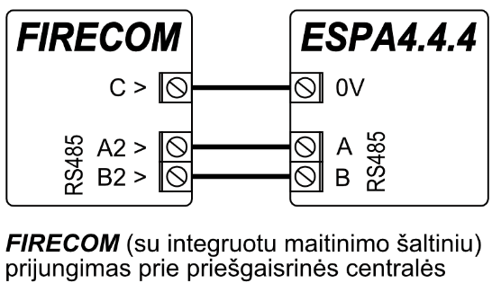 RS485 2 sąsaja naudojama priešgaisrinėms centralėms prijungti.
