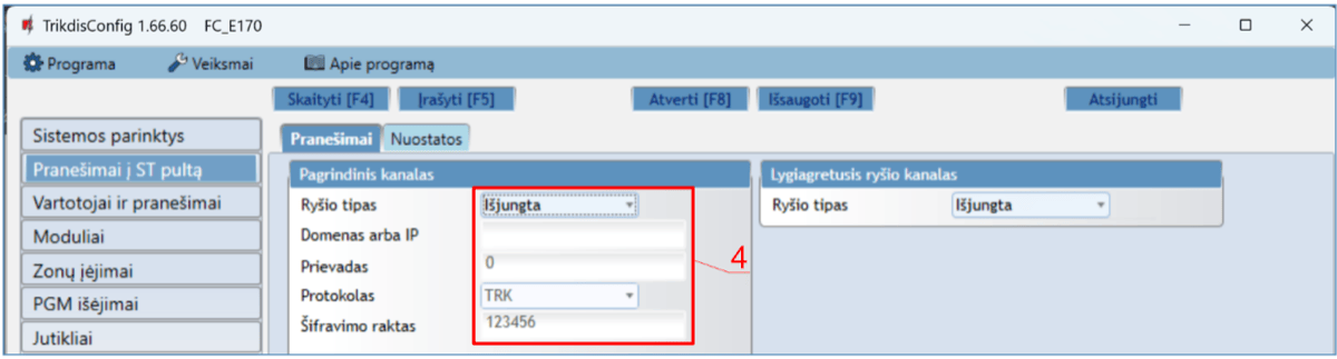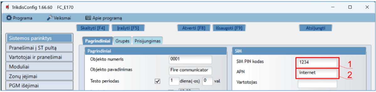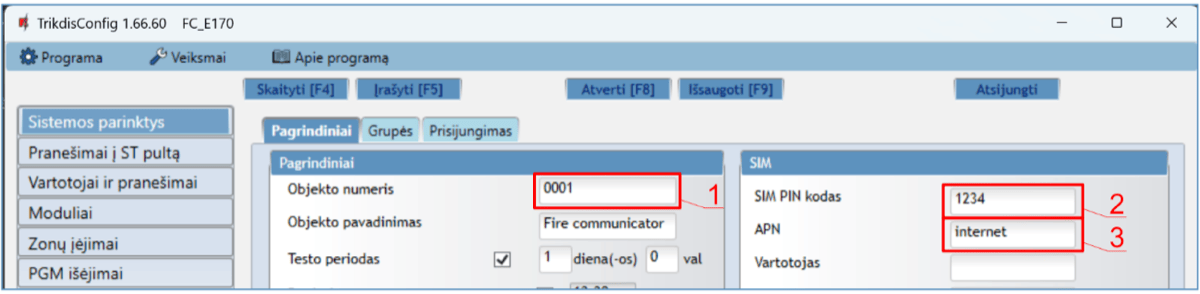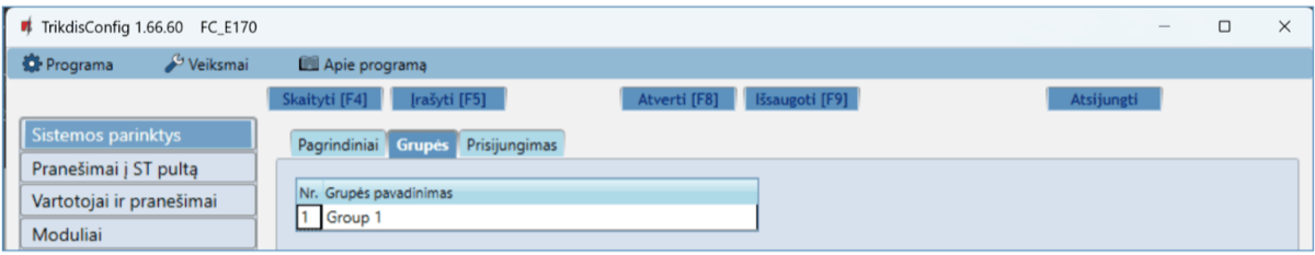 Grupė – įrašykite grupės numerį, kuris bus siunčiamas įvykus įvykiui.