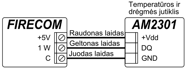 | Didžiausias temperatūros jutiklių, jungiamų prie 1-Wire magistralės, skaičius | 8 (Dallas) arba 1 (jei naudojamas AM2301 serijos jutiklis) |