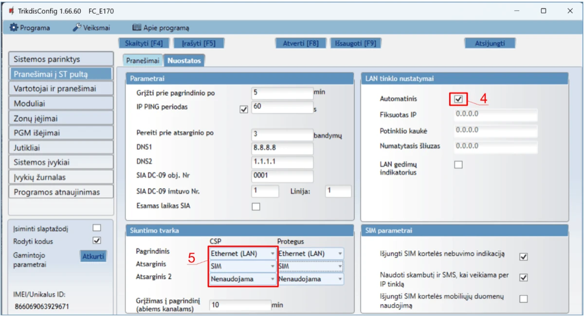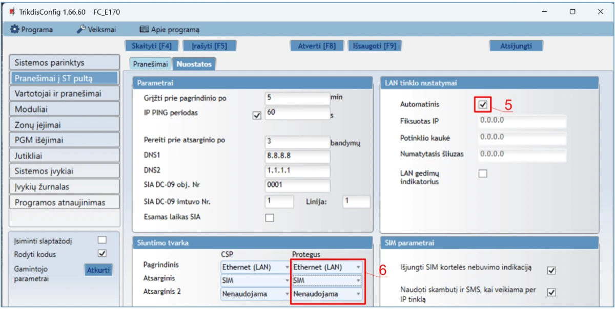 CSP - pažymėjus šią parinktį, išėjimo įvykių pranešimai bus siunčiami į centralizuoto stebėjimo pultą.