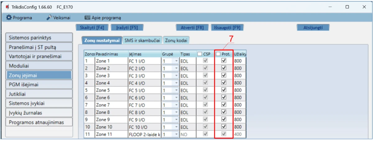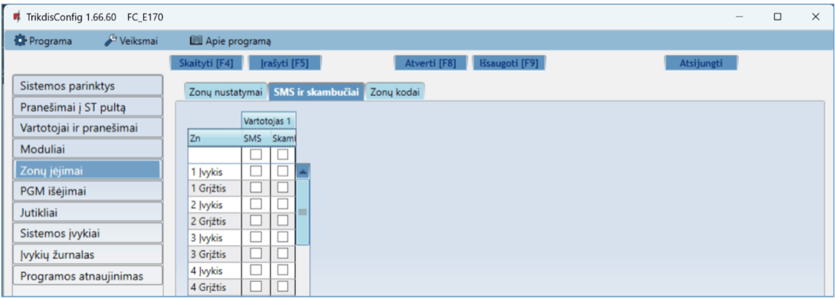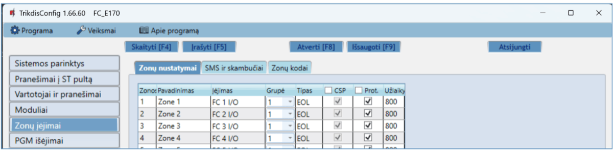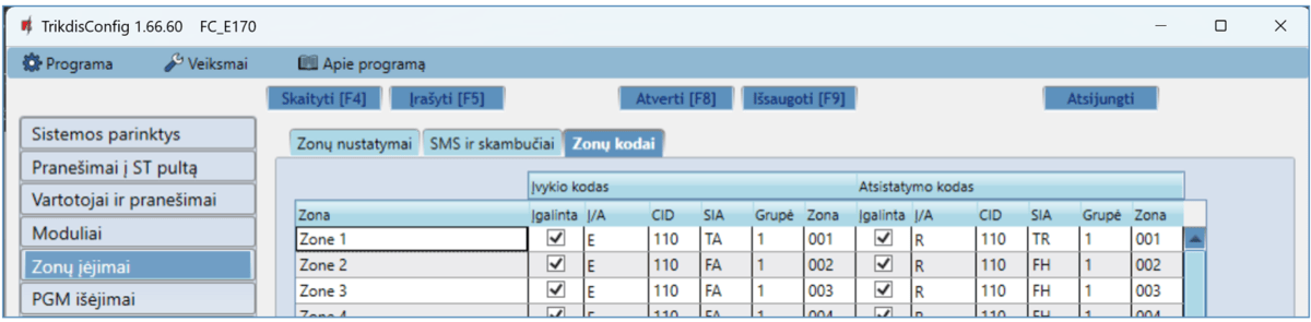 Zona - įrašykite zonos numerį, kuris bus siunčiamas įvykus įvykiui.