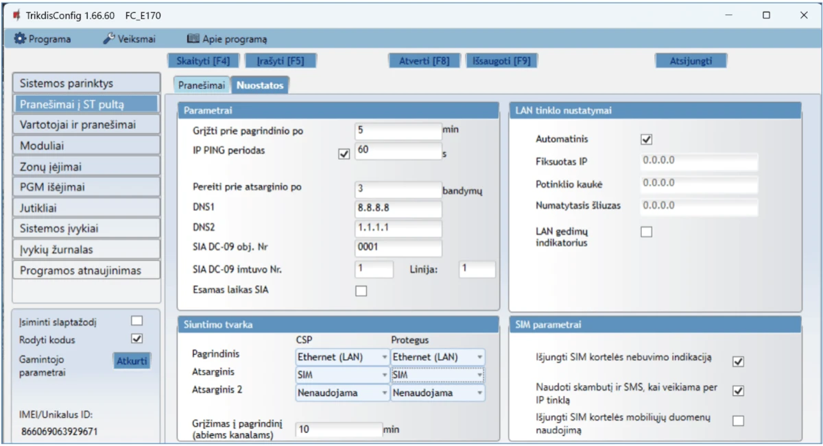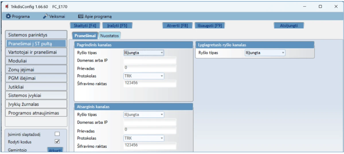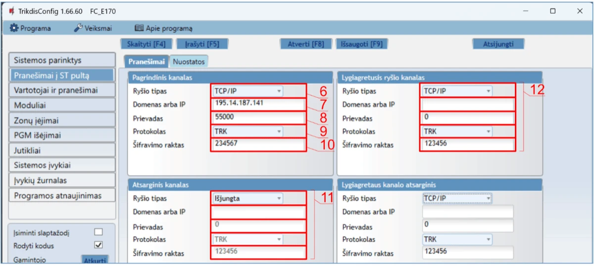 Centrinio stebėjimo pulte pranešimai priimami TRIKDIS IP imtuvu arba SIA DC-09 IP protokolu veikiančiu IP imtuvu.