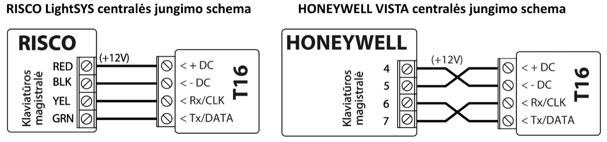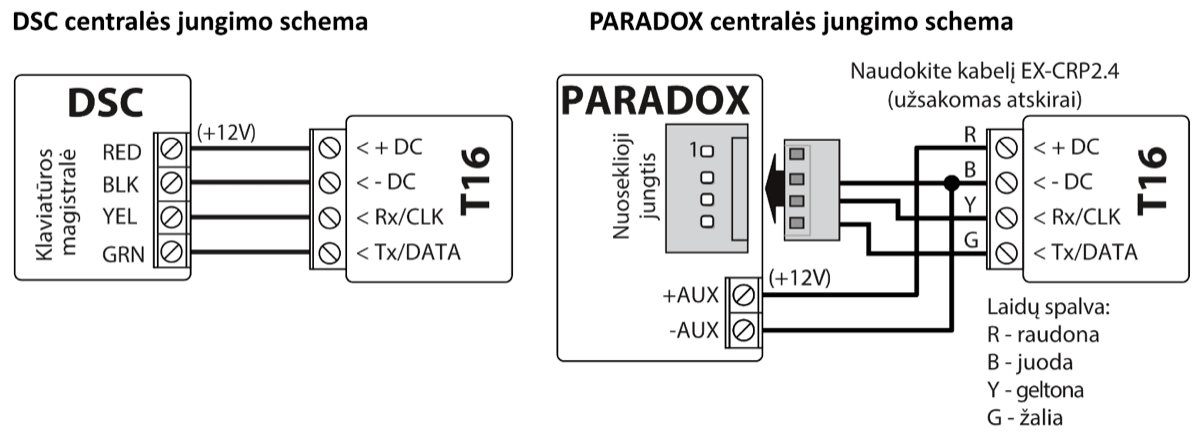 | įėjimas | 6, nustatomas tipas: NC, NO, EOL (2,2 кΩ) | 6, nustatomas tipas: NC, NO, EOL (2,2 кΩ) | 5, nustatomas tipas: NC, NO, EOL (2,2 кΩ) |