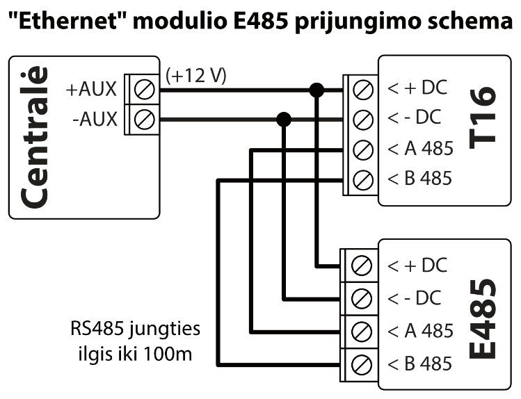 RS485 sąsaja IP siųstuvams ir išplėtimo moduliams.