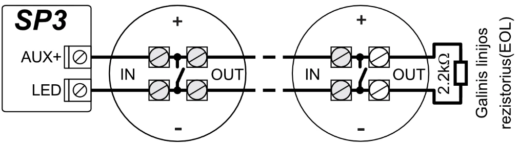 „FLEXi” SP3 centralę galima įrengti vietoje buvusios centralės, jutikliuose nekeičiant EOL grandinių rezistorių nominalų.