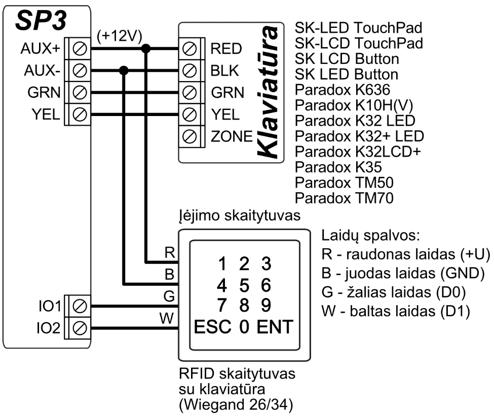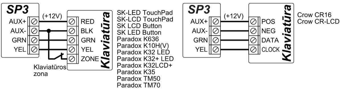| Palaikomos klaviatūros | SK-LED TouchPad (Protegus SK232 LED W) / SK-LCD TouchPad (FLEXi SK232 LCD) / SK LCD Button / SK LED Button / Paradox K636 / Paradox K10H(V) / Paradox K32 LED / Paradox K32+ LED / Paradox K32LCD+ / Paradox K35 / Paradox TM50 / Paradox TM70 / Crow CR16 / Crow CR-LCD |