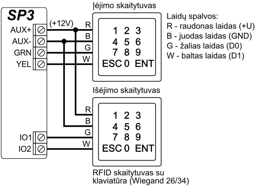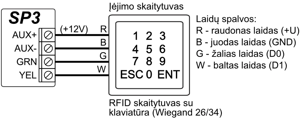 | Didžiausias RFID skaitytuvų (Wiegand 26/34) skaičius | 2 |